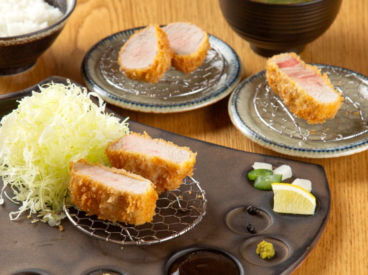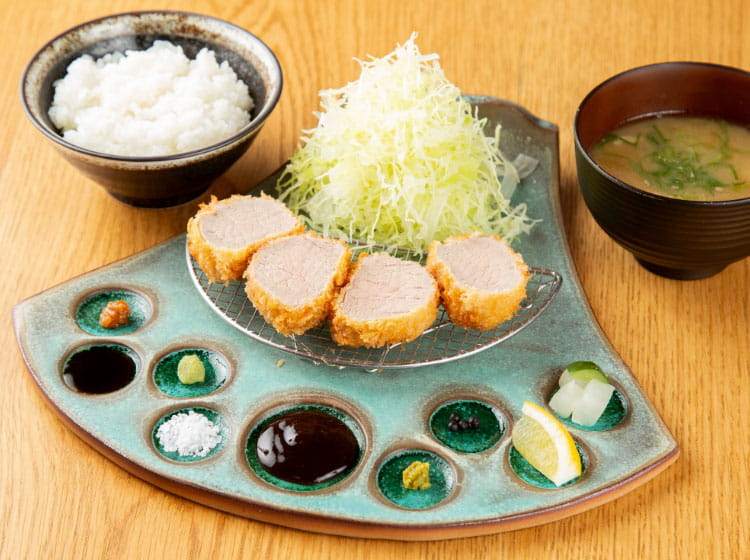 ランチは、部位ごとにお選びいただける定食でご用意しています(税込 2,500円〜)。『ロース』『ヘレ』『リブロース』など、それぞれの持ち味を楽しめる一膳は、その日の気分やお好みに合わせてお選びいただけます。さらに、定食のご飯、豚汁、野菜はおかわりにも対応しており、満足感のあるランチタイムをお過ごしいただけます。