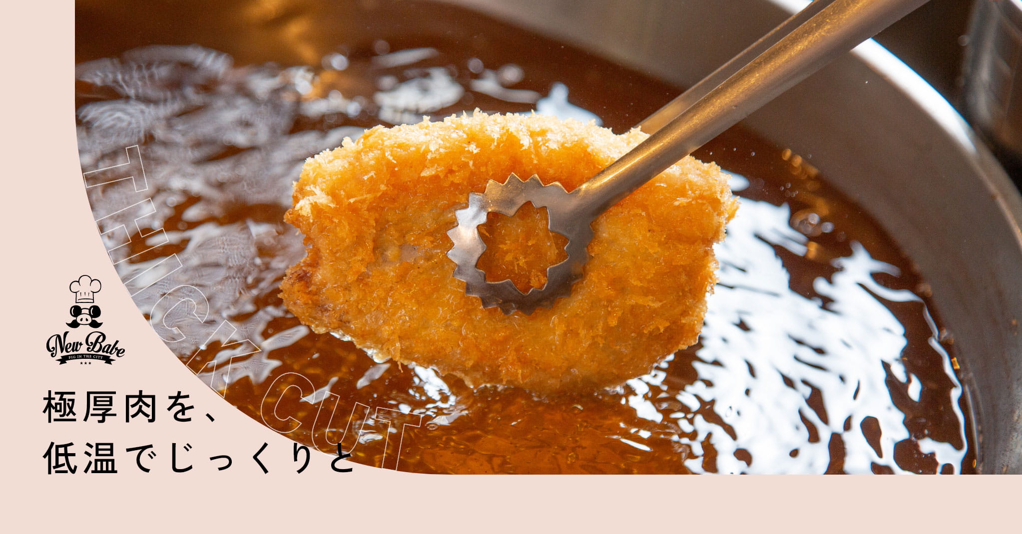 肥後橋駅から徒歩3分。路地裏にひっそりと佇む「ニューベイブ肥後橋」は、厳選した銘柄豚だけを使う、とんかつ専門店です。メインの『林SPF』をはじめ、その日ごとに出会える希少な銘柄豚を、低温調理でじっくりと仕上げることで、極厚でも驚くほどやわらかく、旨みあふれる一枚に。9種類の調味料とこだわりのご飯が、その美味しさをさらに引き立てます。木の温もりを感じる店内は、開放感に満ちた心地よい空間。肩肘張らずに、上質なとんかつをお楽しみください。
